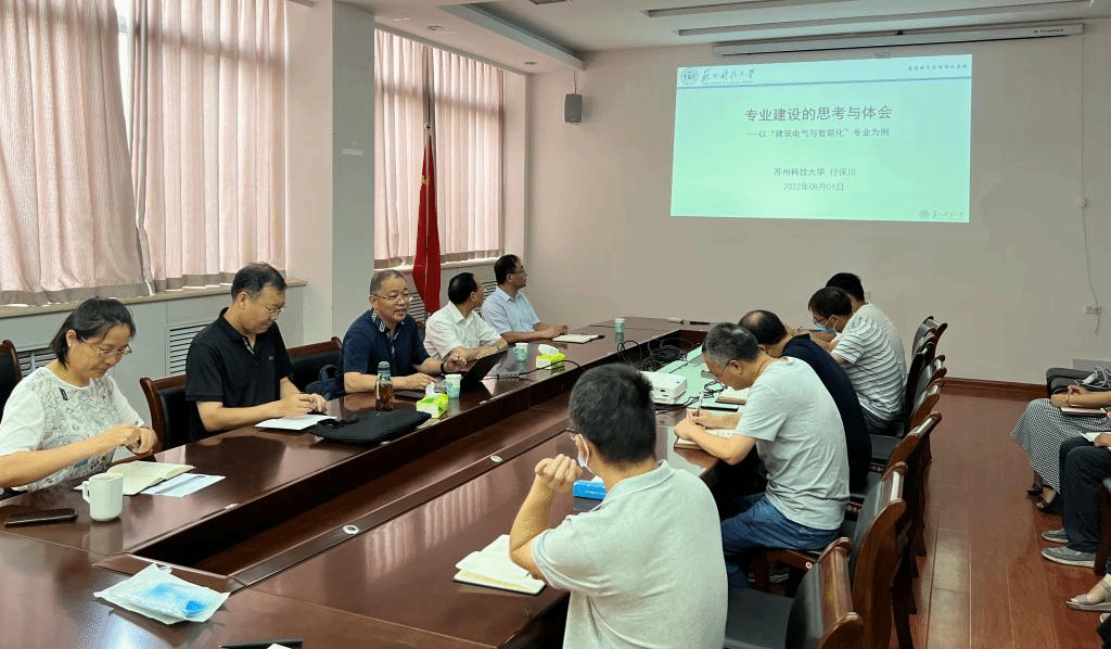 在报告会上,付保川教授以建筑电气与智能化专业建设为例,在报告中详细分享了专业建设的总体思路、主要内容、目前已取得成效、未来建设目标与举措等内容。并且就创建一流专业、工程教育认证等问题介绍了有关工作经验和建议,并对我院教育理念和教学管理思路给予肯定,希望今后双方进一步加强交流互动,共谋发展。
