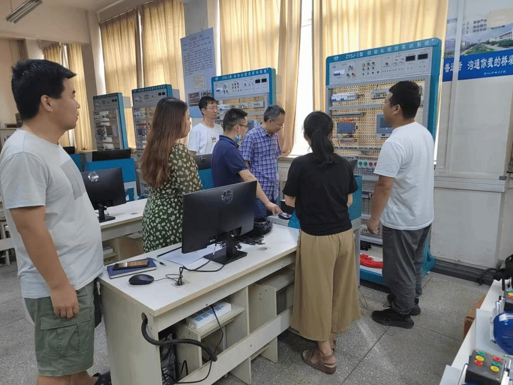 同时,为了提高教师和实验员对新设备的使用,实验中心邀请了厂家工程师对设备进行了技术培训,并进行设备清点和预验收工作。副院长葛广军、副院长何国锋、研究机构副主任梁成武、实验中心主任王丹阳、市级科研平台主任宋亚凯、PLC课程组老师任琦梅、邢广成、宋伟等参与了此次技术培训和预验收工作。