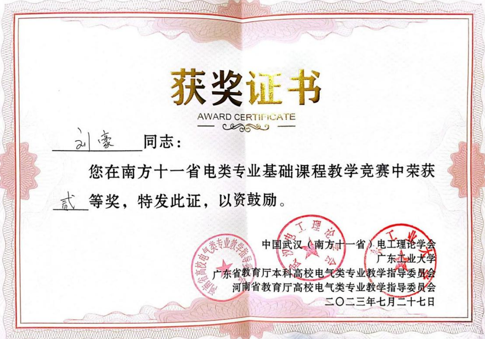 本次教学竞赛分赛区初赛和全国决赛两个阶段进行,初赛由各省分会组织,共有来自全国11个省市22所高校100余名教师参加,最终有32名教师入围教学竞赛决赛,决赛在广州学术年会中进行,采用现场比赛方式。经过参赛教师精心准备、院领导及优秀骨干教师耐心指导,我院教师刘豪最终在决赛中荣获二等奖的优异成绩。